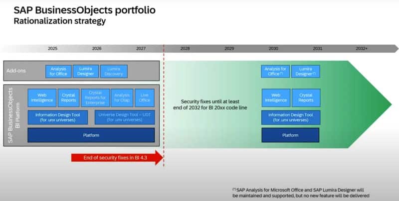 First, it was about the roadmap for SAP BusinessObjects, and in this context, the slide below was shown – by colleagues at SAP: